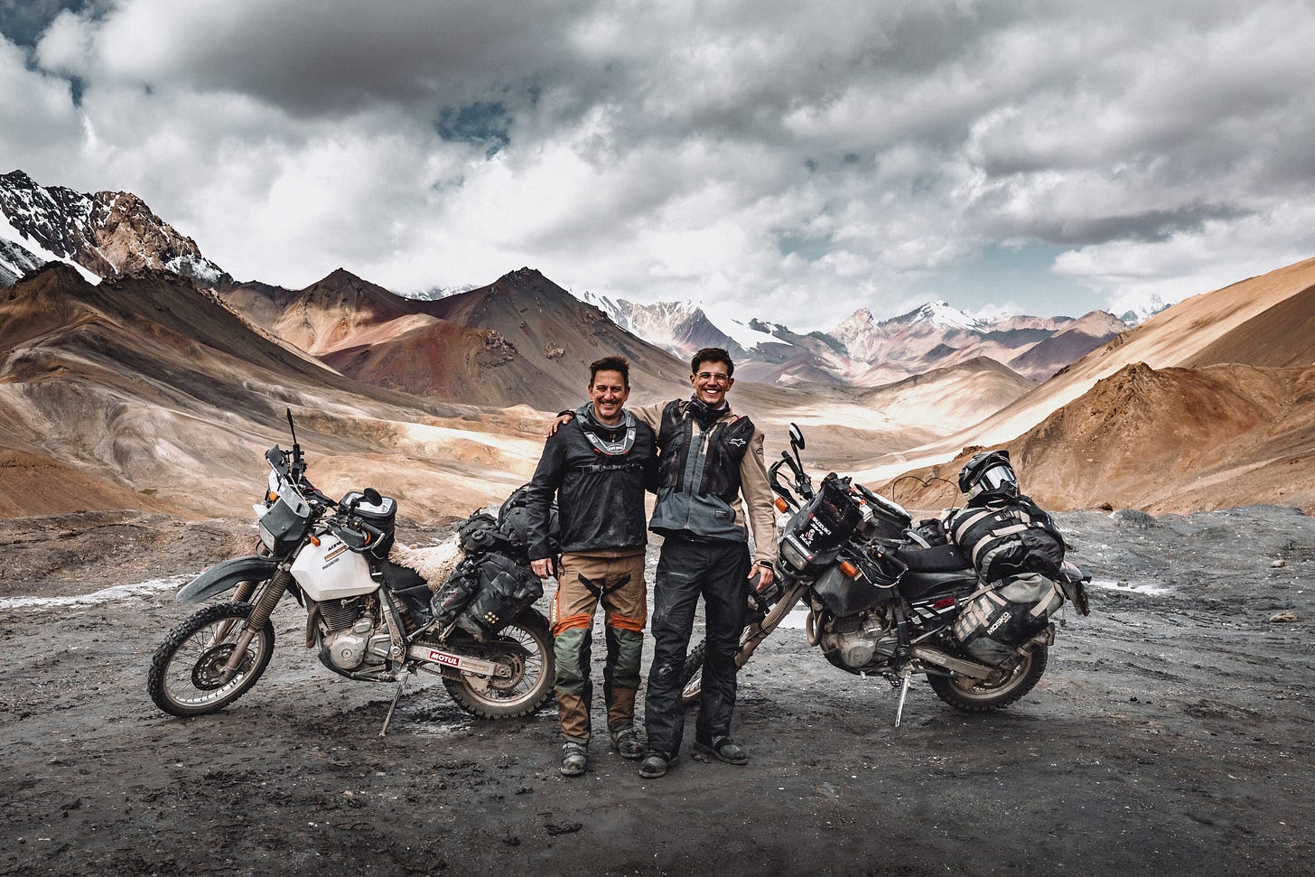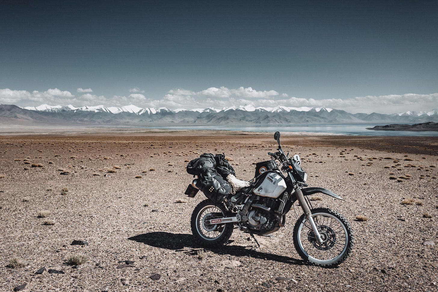 Day 75 - We have finally made it! After traveling 13,425 km, we have reached the highest point of our journey, the Ak-Baital pass along the Pamir Highway. This high mountain pass stands at an impressive elevation of 4,670 m (15,321 ft) above sea level, situated in the Gorno-Badakhshan Autonomous Region of Tajikistan. At this elevation, it was the highest road pass in the former Soviet Union. We are thrilled that we decided to wait out the bad weather in Murghab, allowing us to see the peaks today, even covered with a few clouds. Surrounding us is a breathtaking high alpine landscape, with mountain ranges as high as 6,000 meters. We spent some time at the pass with fellow motorcyclists and cyclists (I am truly amazed by how many cyclists make it up here, literally defying gravity as they pedal thousands of meters uphill…) before we began our descent towards the stunning steppe plains surrounding Karakul Lake.