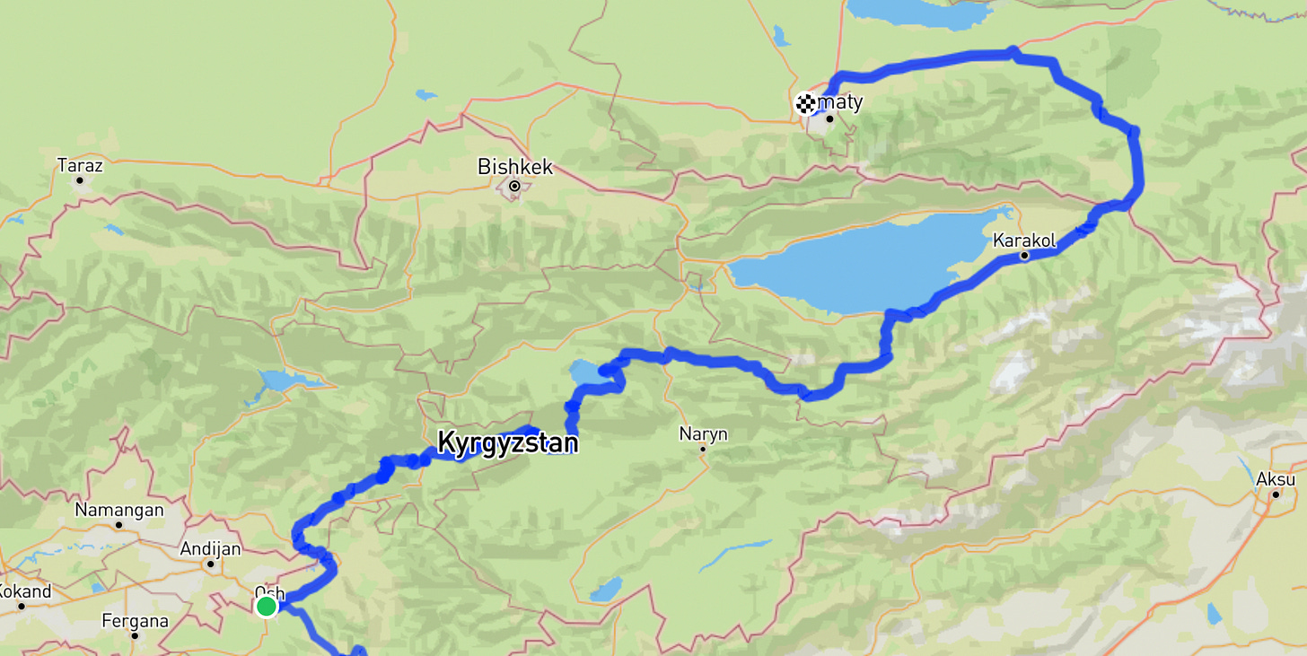 Osh (KYR) to Almaty (KAZ) +/- 1200 km 6 days