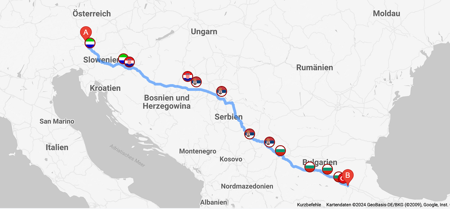 Villach (A) - Edirne (T) 1500 km Train - 2 days