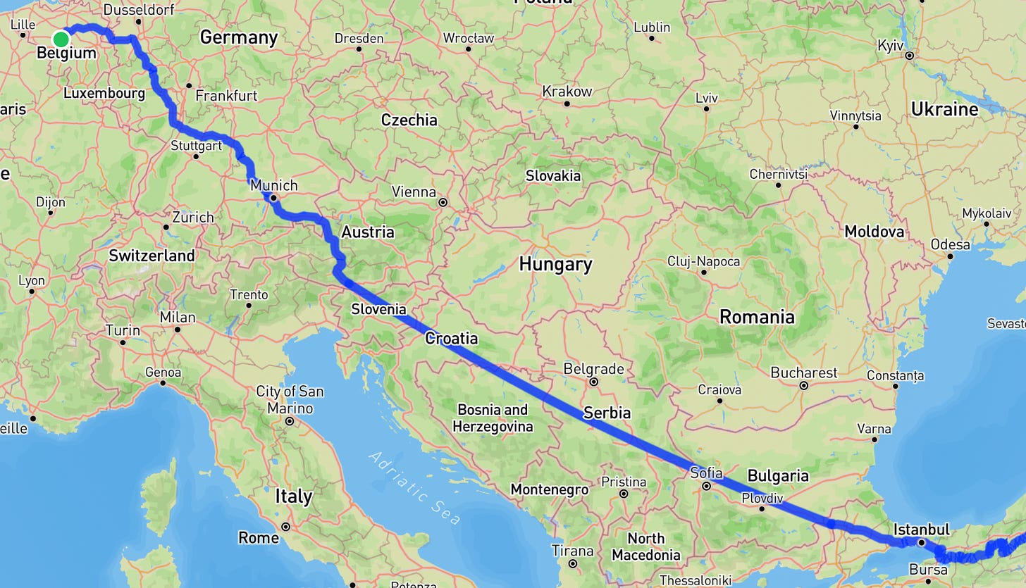 Leg 1: 21.4.-05.5. Brussels to Villach (ride) to Istanbul (train)