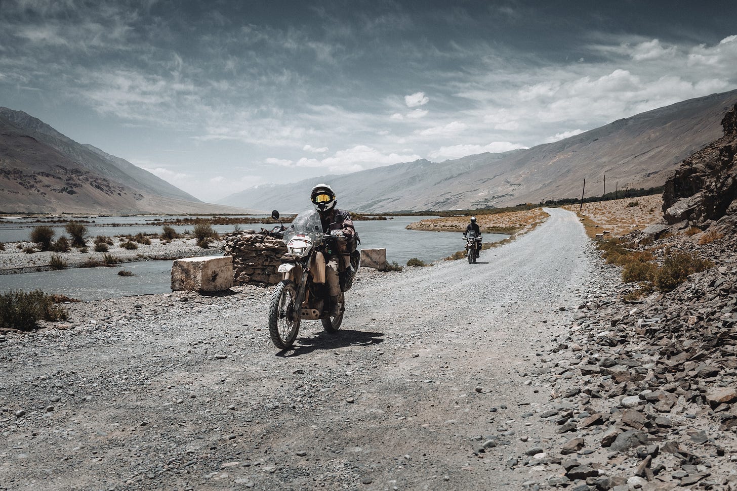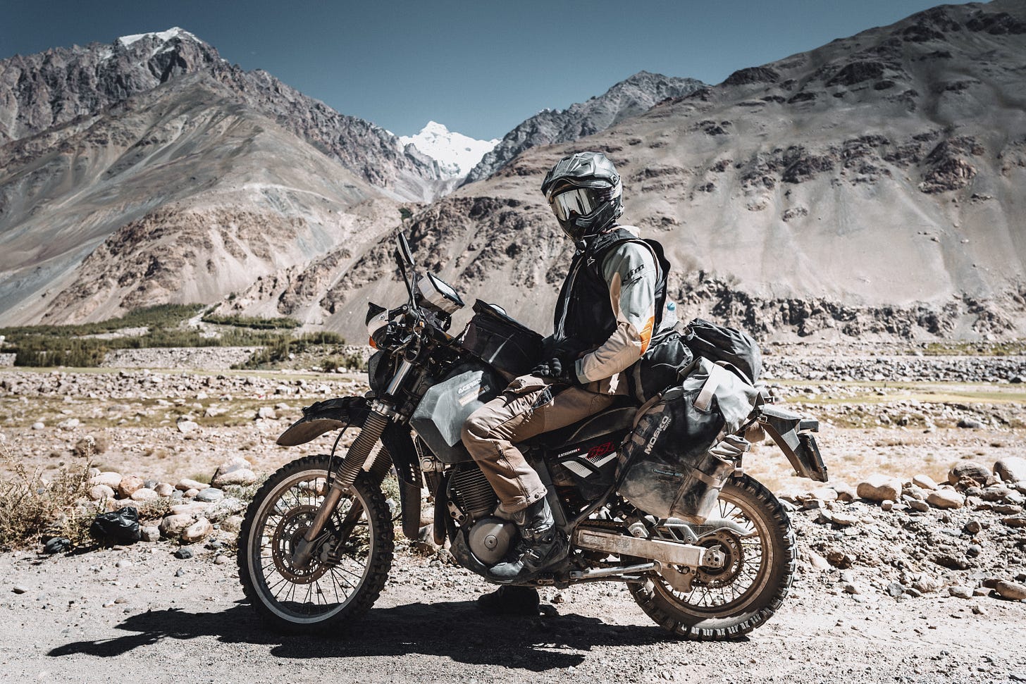 Day 70 cont. - You rarely ride solo, and this time we encountered fellow adventure riders Sally and Ethan on our journey into the Wakhan valley, heading in the same direction. They come from Seattle in the US, have been on the road for over a year, and are riding their classic Honda 600R’s starting from Cape Town, traversing Africa and now making their way into Central Asia. Their next goal is to cross China to reach Southeast Asia. What an adventure, right? We’d call it bad ass! They are not just a lovely couple, but also incredibly humble about their accomplishments. And they show to everyone that real adventures are still out there. You just have to set out and make it happen.