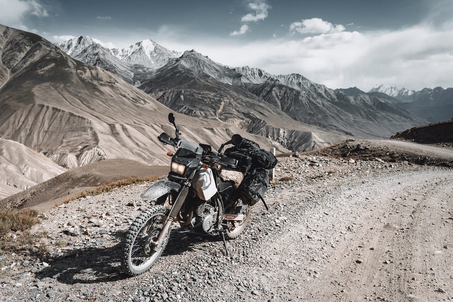 Day 72 - The gentle tapping of rain on our tents stirred us awake around 7 am, prompting us to quickly pack up before the rain intensified. We hadn’t encountered rain during our travels in Iran and Afghanistan, making this experience feel almost unfamiliar. Of course, my riding boots were still soaking wet from yesterday's river crossing and there’s nothing quite like slipping your feet into cold, damp boots first thing in the morning. A great start. To keep my feet somewhat warm at this altitude I changed my socks three times during our ride, which kind of worked. After we handed out our last passport copy to the Tadjik soldier, we passed the checkpoint to exit the Wakhan valley and leave the Hindu Kush and Afghanistan behind us. The Khargush Pass is a high mountain pass at 4319 meters above sea level connecting the Wakhan Valley with the Pamir Highway. As we descended from the sandy paths of the pass, we were met with endless kilometres of washboard tracks. The experience felt like cycling for hours over cobblestones, shaking both riders and machines to their limits. Luckily the ordeal was over an hour later, exiting the Kahrgush Valley to rejoin the Pamir Highway.